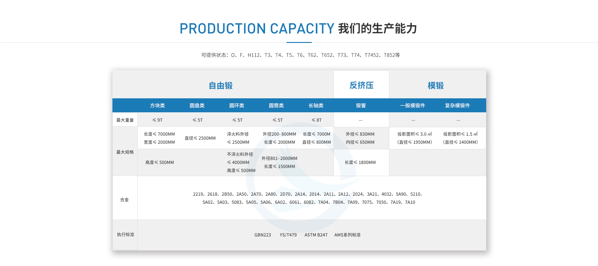全鋁航材-高精級工業鋁材服務商。專業生產制造航天航空軍用合金鋁材、大型鋁模鍛件、自由鋁鍛件、反擠壓鍛管、超厚鍛造鋁板、大型鋁鍛環,異形材航空模鍛造件、特殊成份超高強度新材料。可供應材質,1系-7系鋁合金、防銹鋁、超硬鋁。